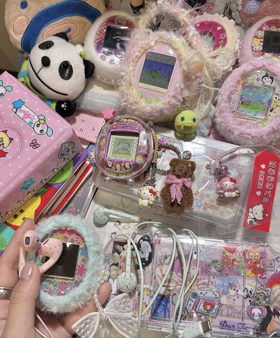 22岁的大四学生小陈是这股潮流的参与者之一。她的包里常年备着三条有线耳机——一条白色原装款搭配简约风格,一条透明紫色用来呼应多巴胺穿搭,还有一条复古编织线专门配Y2K (千禧年风格)造型。“有线耳机线就像配饰,能帮我完成整套look搭配。”