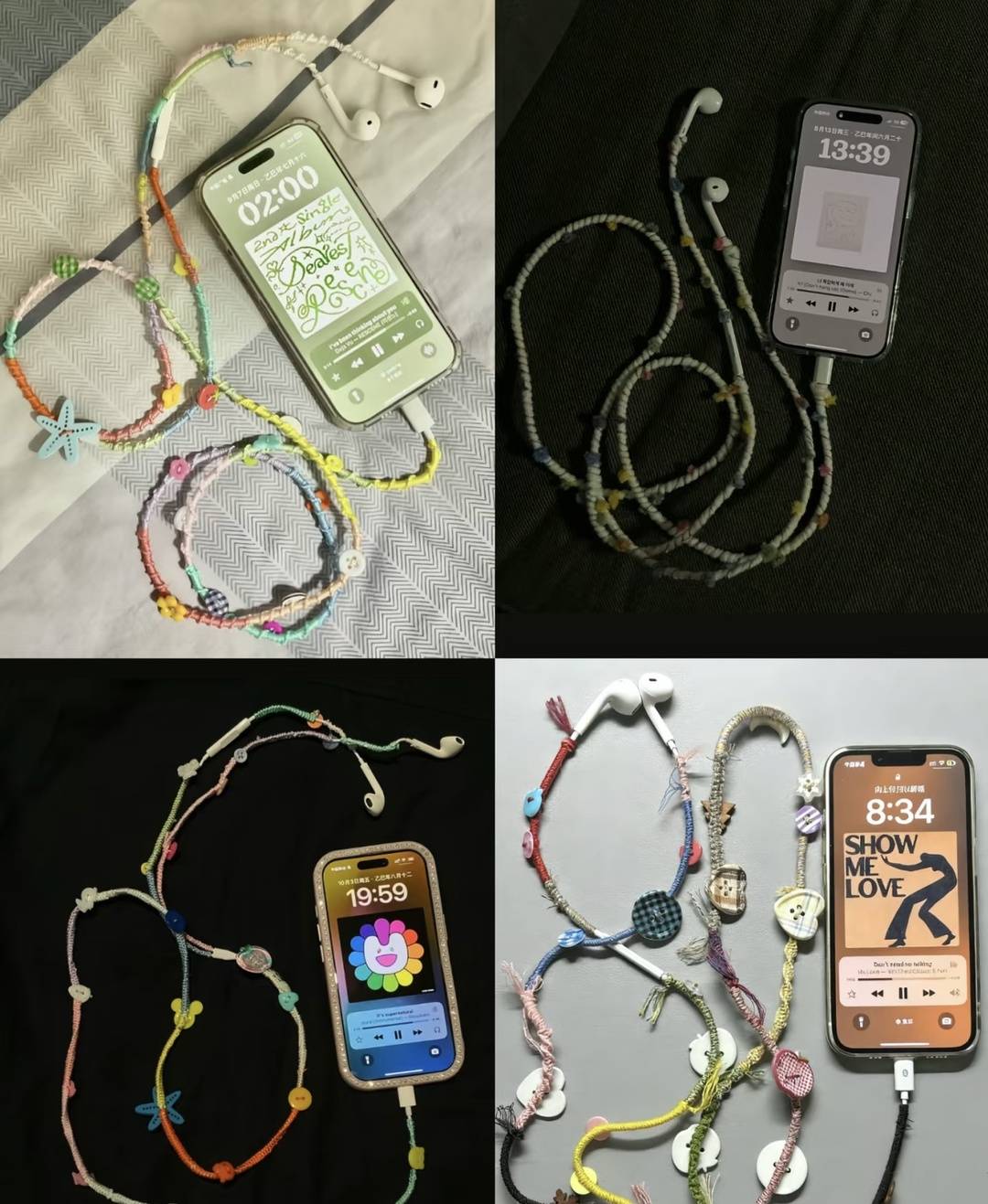更有意思的是,这根线可以“再设计”。有人给有线耳机做手工电镀、贴贴纸、包线改造,把它当作可DIY的饰品;有人直接把耳机绕在手腕当手链、绑在发辫当发绳,甚至像串珠一样参与叠戴。不少网友表示,有线耳机从听歌工具,变成可塑的时尚材料,和墨镜、迷你包等单品一样,以一种“有态度”的方式回来了。